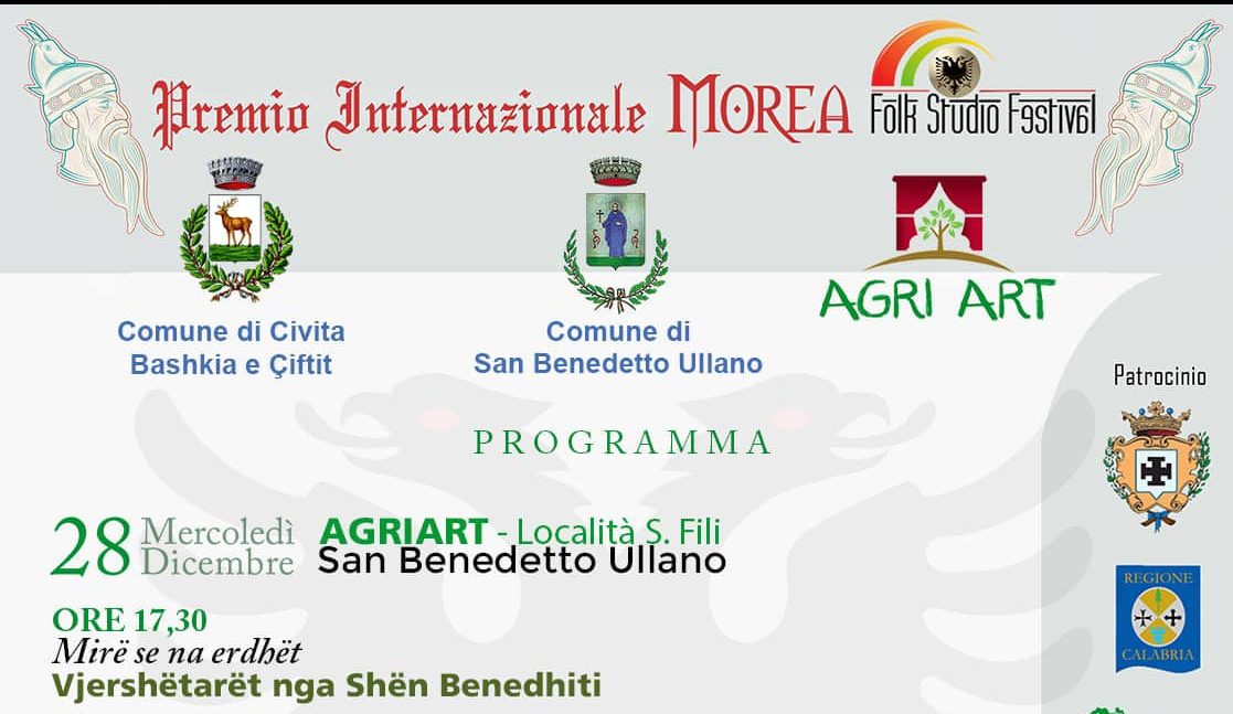 Considerato il successo dell’agosto scorso a Civita del Premio “Morea”, dove sono state insignite, con il Titolo “Artista Benemerito d’Arberia” e “Cavaliere di Scanderbeg”, numerose personalità provenienti dalla Sicilia, dalla Calabria, dalla Puglia, dalla Basilicata, dal Molise, dall’Albania e dal Kosovo, nel corso di una splendida manifestazione a cui hanno partecipato numerosi Sindaci, nonchè rappresentanti del clero dell’Eparchia di Lungro, ospiti d’eccezione, quali il cantante lirico e folk, Gëzim Xhaxhaj dell’Albania; l’ex diplomatico, primo segretario e addetta culturale dell’Ambasciata Albanese in Italia, Geri Zhej Ballo; l’Assessore alla Minoranze Linguistiche della Regione Calabria, Avv. Gianluca Gallo e varie personalità politiche della Provincia di Cosenza e di varie Istituzioni, il Comune di Civita, facendo proprie le istanze dell’Associazione Folk Studio Festival di San Demetrio Corone, ha inteso patrocinare, in collaborazione con il Comune di San Benedetto Ullano e l’Associazione “Agri Art”, anche una edizione invernale.