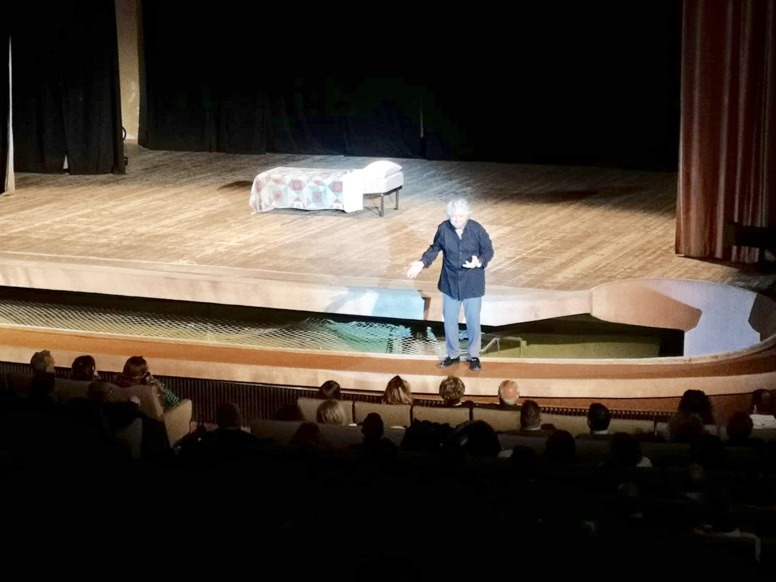 Toni sarcastici sui dialetti calabresi, sugli acciacchi della vecchiaia e su come coltivare l’insonnia senza combatterla. Applausi scroscianti del pubblico che riconosce in Grillo la capacità di saper coniugare il senso critico all’ironia, sconfinando solo in parte nella politica. Il futuro è l’evoluzione tecnologica e la capacità di sapersi uniformare ai processi di cambiamento.