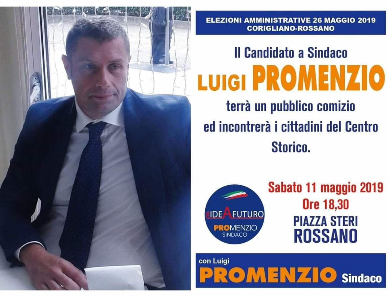 Promenzio incontrerà i cittadini sabato 11 maggio, alle ore 18.30 a piazza Steri nel centro storico di Rossano.