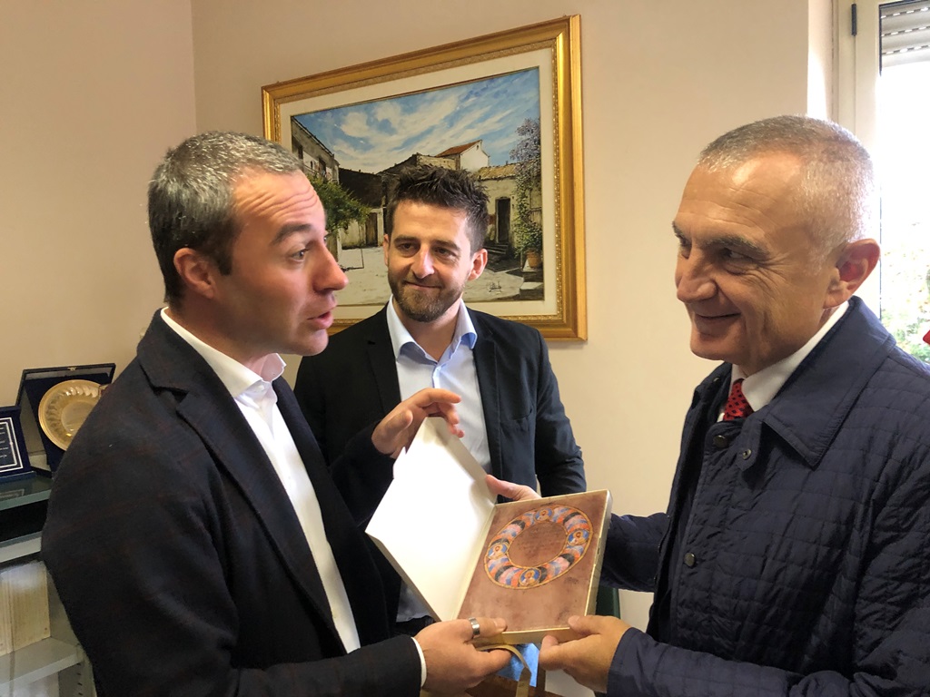 Al Presidente Meta, che ha espresso grande soddisfazione per la proposta che sosterrà in tutti i passaggi per avviare l’intesa tra le due amministrazioni comunali, è stata consegnata una riproduzione su tela della Tavola dei Canoni del Codex. (comunicato)