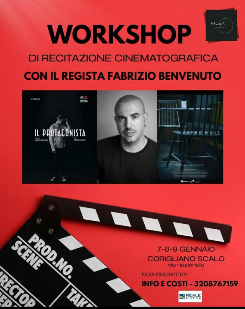Da questa visione nasce anche il workshop di recitazione che terrà a Corigliano nei giorni 7, 8 e 9 gennaio, pensato come spazio di lavoro intenso e confronto diretto. In questa intervista, Fabrizio Benvenuto racconta il suo cinema, la formazione e il valore del lavoro con gli attori.