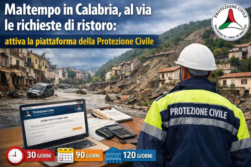 CATANZARO – È attiva la piattaforma informatica della Protezione Civile regionale per la richiesta dei ristori relativi ai danni causati dagli eventi calamitosi dell’11-20 febbraio 2026 nelle province di Catanzaro e Cosenza, per i quali è stato dichiarato lo stato di emergenza nazionale.