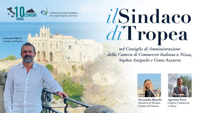 TROPEA – Camera di Commercio Italiana a Nizza, Sophia Antipolis e Costa Azzurra, il Sindaco di Tropea è stato eletto membro del Consiglio di Amministrazione. L’Assemblea Generale, riunitasi nei giorni scorsi, ha individuato insieme al suo nominativo e alla sua esperienza quella dell’assessore al turismo del Comune di Genova, Alessandra Bianchi.