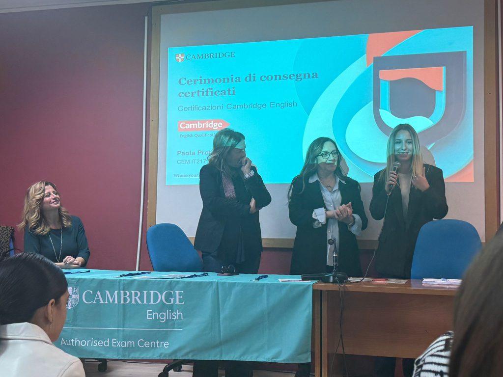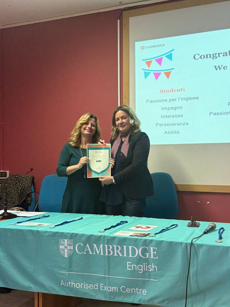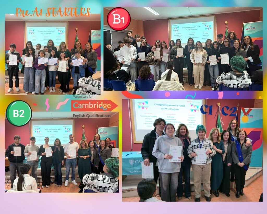 La Dirigente ha evidenziato come investire nelle competenze linguistiche significhi offrire agli studenti strumenti concreti per il loro futuro accademico e professionale, ribadendo il ruolo centrale della scuola nel formare cittadini consapevoli, aperti e competitivi a livello internazionale. Non è mancato il ringraziamento alle quattro docenti di lingua inglese che hanno tenuto i corsi di preparazione durante lo scorso anno scolastico – le prof.sse Adele Cilento, Isabella Marzullo, Rossella Molinari, Laura Ruggi – così come all’intero Dipartimento di Lingue Straniere.