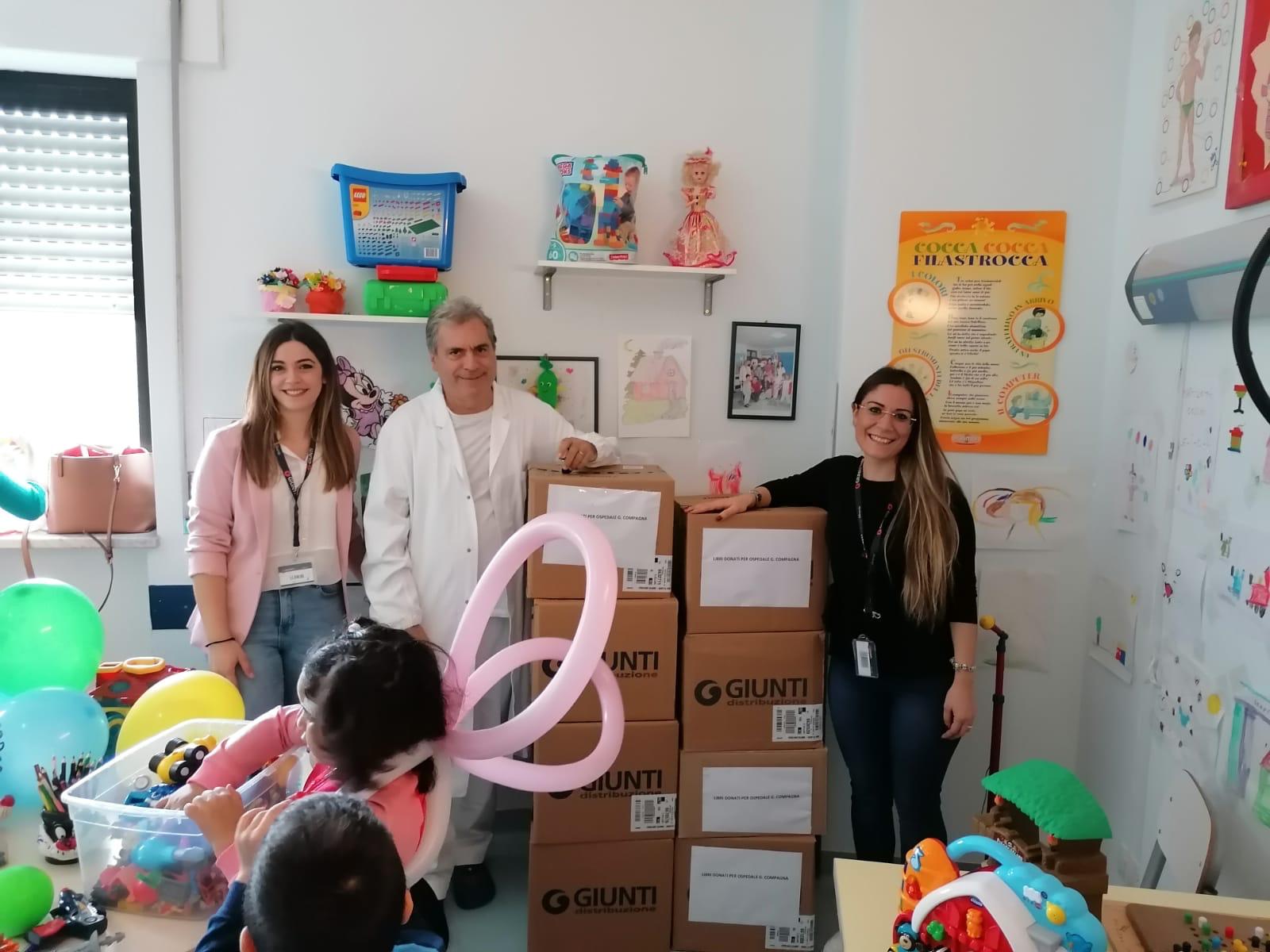 589 libri regalati alla ludoteca del reparto di Pediatria dell’ospedale spoke di Corigliano Rossano, per un controvalore di circa cinquemila euro. Una donazione fatta dalla libreria “Giunti al Punto” del centro commerciale “I Portali” di Corigliano. Un gesto solidale che parte da molto lontano; sono ormai dieci anni che sul territorio nazionale viene promossa la campagna “aiutaci a crescere, regalaci un libro”. Quest’anno sono stati poco più di 319.000 i libri raccolti in tutta Italia. I libri sono donati dai clienti che li scelgono e li lasciano in libreria nel mese di agosto oppure vengono acquistati grazie ai contributi dati da aziende sostenitrici. Concluso il mese di raccolta, si procede con la donazione. I destinatari sono sovente i bambini delle scuole oppure quelli ricoverati negli ospedali.