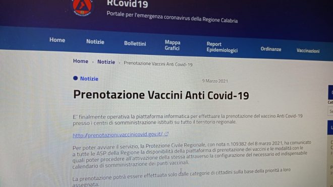 La gestione delle prenotazioni e la distribuzione dei vaccini anti-Covid19 in Calabria vengono fatte senza criterio logico: il Dipartimento Regionale e l’Ufficio del Commissario pongano immediato rimedio aggiustando il tiro in base alle esigenze della popolazione e al territorio”. E’ quanto dichiara il consigliere provinciale Andrea Cuzzocrea, intervenendo sui disagi che i cittadini, e soprattutto le categorie fragili, stanno incontrando sulla piattaforma di prenotazione.