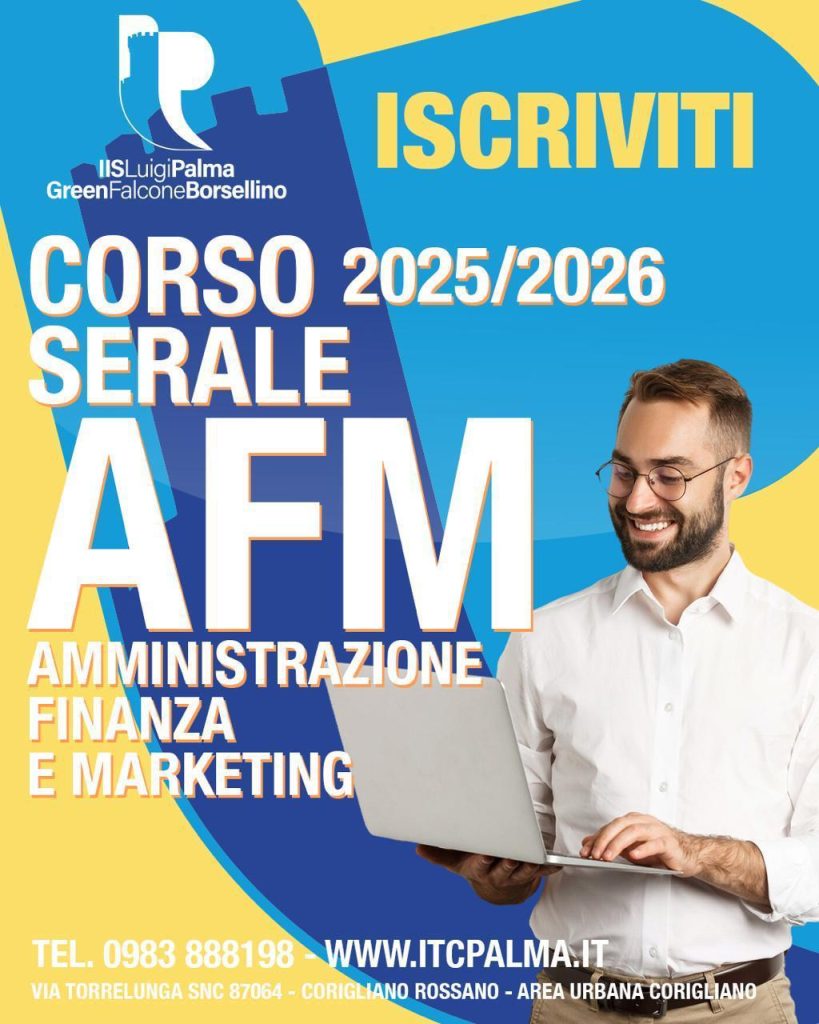 Un diploma, nuove competenze e maggiori opportunità con i percorsi formativi per adulti negli indirizzi AFM e Geometra. Vuoi rimetterti in gioco, accrescere le tue opportunità professionali o concludere un percorso lasciato in sospeso? È il momento giusto per farlo: all’IIS L. Palma Green Falcone Borsellino di Corigliano Rossano sono aperte le iscrizioni ai corsi […]