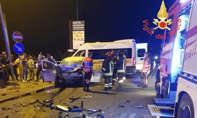 Due morti e un ferito grave: questo il tragico bilancio di un grave incidente stradale avvenuto intorno a mezzanotte sulla statale 106, nel comune di Sellia Marina.