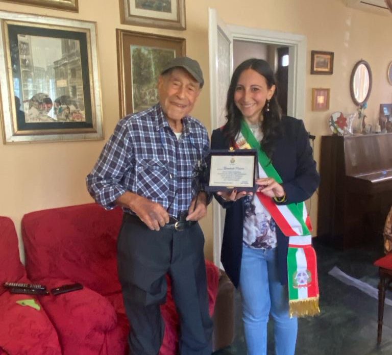 Su delega del Sindaco Alex Aurelio l’assessore alle politiche sociali Antonia Roseti, nei giorni scorsi ha raggiunto lo speciale festeggiato a Milano per condividere gli auguri dell’intera comunità, consegnandogli una targa come segno di riconoscimento civico.